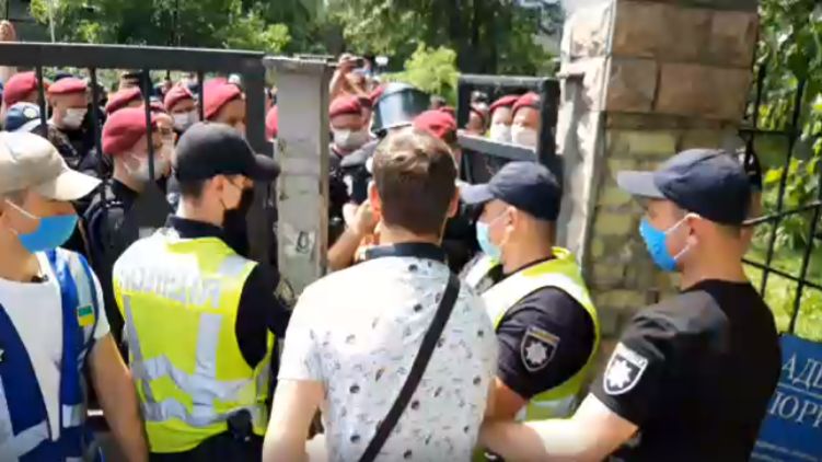 В понедельник, 15 июня, полиция вытолкала журналиста "Страны" и представителей ряда других СМИ от здания Шевченковского райсуда, где избирают меру пресечения убившему человека радикалу Сергею Стерненко.