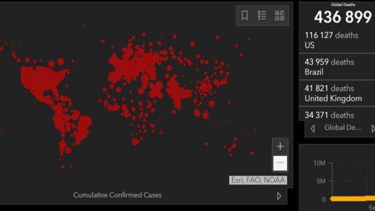 Число умерших от коронавируса по странам мира, фото: coronavirus.jhu.edu/map.html