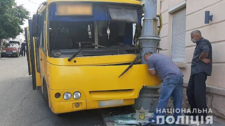 В Черновцах маршрутка врезалась в столб. Фото: Нацполиция