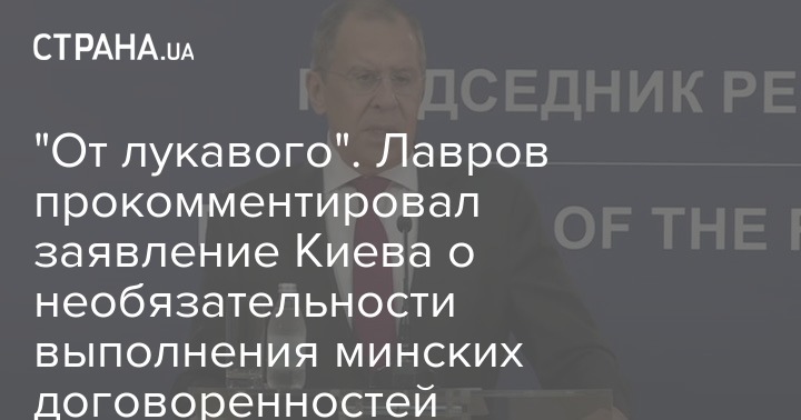 Такое заявление сегодня сделал глава МИД РФ Сергей Лавров и добавил, что заявления украинских официальных лиц о необязательности исполнения минских соглашений "от лукавого либо от незнания предмета".