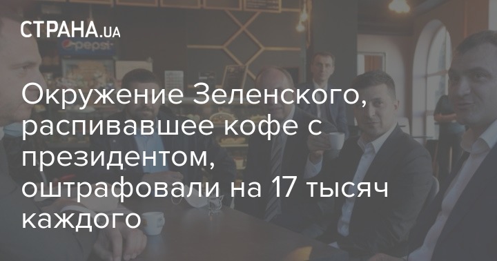 Окружение Зеленского, распивавшее кофе с президентом, оштрафовали на 17 тысяч каждого
