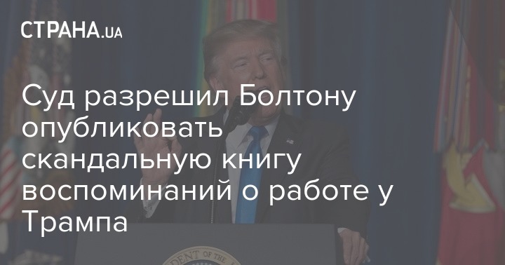 Федеральный суд США разрешил Джону Болтону опубликовать мемуары о президенте Дональде Трампе, проверив последнюю версию для печати на наличие секретной информации.