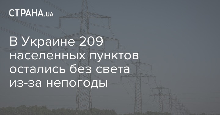 В Украине из-за непогоды, которая бушевала в стране минувшим вечером и ночью, без света остались более 200 населенных пунктов, расположенных в семи областях.