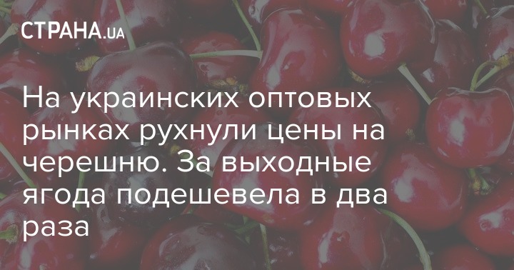 В Украине на выходных резко обвалились оптовые цены на черешню. Из-за избытка предложения и снижения спроса даже ягоды хорошего качества, которые в конце прошлой рабочей недели стоили около 75-80 грн/кг, на выходных продавались за 35-40 грн/ кг.