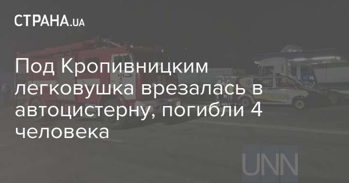 В Кировоградской области легковой автомобиль столкнулся с автоцистерной, в результате чего находящиеся в легковушке четыре человека погибли.