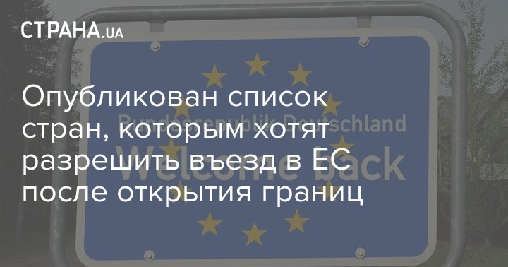 Телеканал "Euronews" опубликовал список государств, гражданам которых могут разрешить въезд в Евросоюз после открытия границ. В этот список попали 54 страны и Украина указана в их числе.