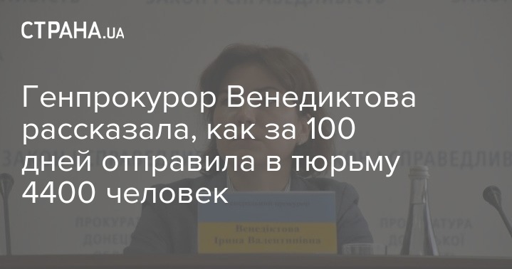 Генпрокурор Венедиктова рассказала, как за 100 дней отправила в тюрьму 4400 человек