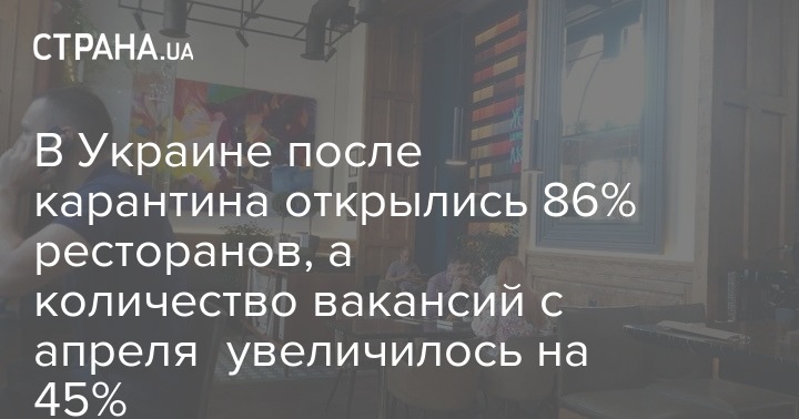 В Украине после карантина открылись 86% ресторанов, а количество вакансий с апреля увеличилось на 45%
