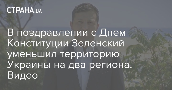 В поздравлении с Днем Конституции Зеленский уменьшил территорию Украины на два региона. Видео
