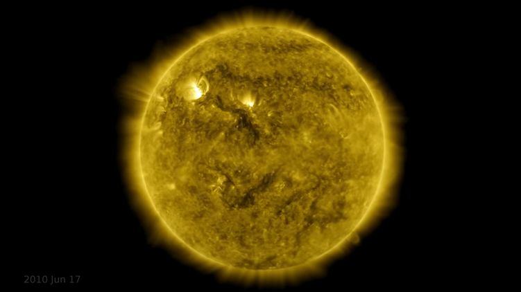 Если внимательно присмотреться, на видео заметны несколько моментов с темными кадрами. Их появление связано с тем, что Земля или Луна затмевали собой Солнце от орбитальных аппаратов SDO. А в 2016 году один из аппаратов вышел из строя на неделю, из-за чего экран темнее на довольно продолжительное время.