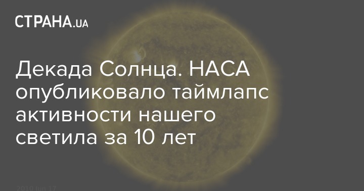 Декада Солнца. НАСА опубликовало таймлапс активности нашего светила за 10 лет