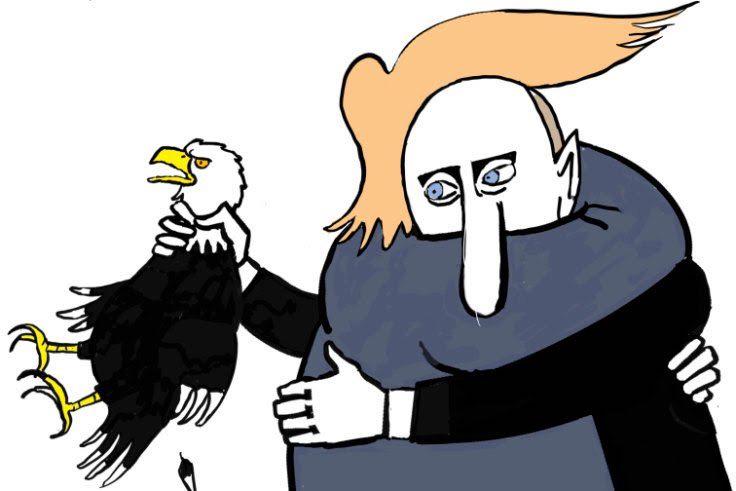 Примерно ту же фабулу изложили другие крупные издания из орбиты Демпартии - Washington Post и Wall Street Journal. Начали публиковаться и характерные карикатуры, на которых Путин "убивает" американских солдат.