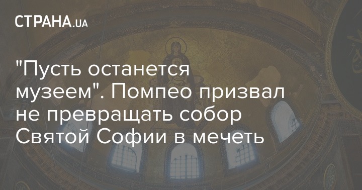 В среду, 1 июля, госсекретарь США Майк Помпео призвал власти Турции не превращать константинопольский собор Святой Софии в мечеть и сохранить его статус музея.