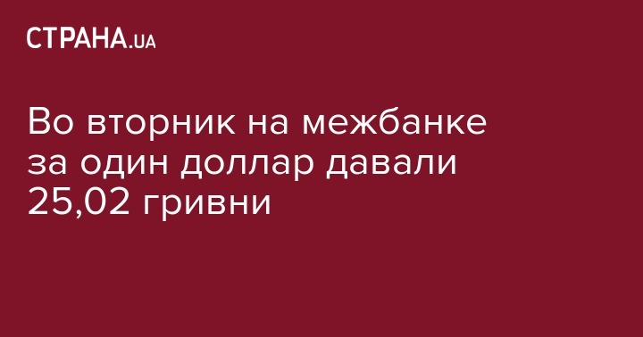 Курс гривни на межбанковском валютном рынке во вторник остался без изменений на уровне 25,02 грн/$1, сообщили дилеры коммерческих банков.