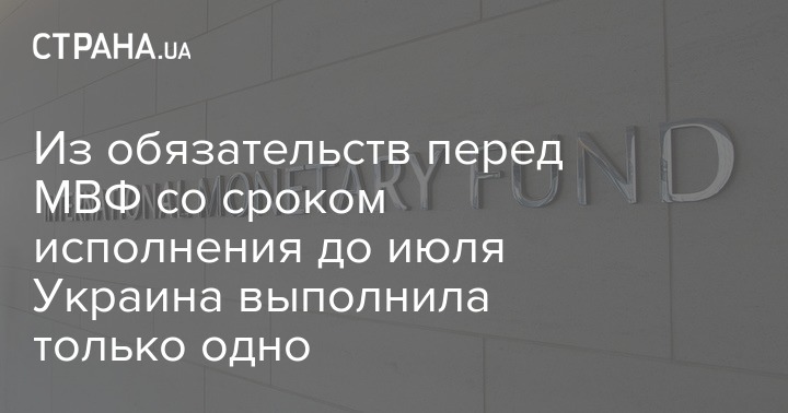 Украина выполнила единственное из семи обязательств, названных в меморандуме с МВФ по новой программе stand by и срок исполнения которых истекал в июне. Это принятие Верховной Радой 19 июня закона №2284, упрощающего инвестиции и внедрение финансовых инструментов.