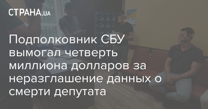 Подполковник СБУ вымогал четверть миллиона долларов за неразглашение данных о смерти депутата