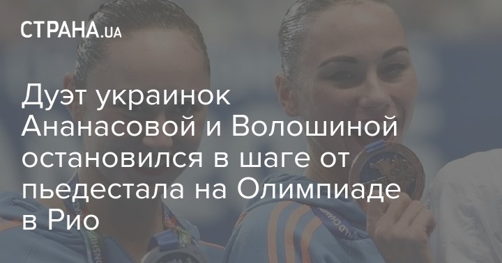 Дуэт украинских пловчих Лолиты Ананасовой и Анны Волошиной занял четвертое место в соревнованиях в синхронном плавании на Олимпиаде 2016. Об этом сообщает пресс-служба Национального олимпийского комитета Украины.