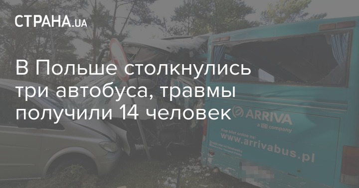 В воскресенье вечером, 5 июля, в Польше произошла авария при участии двух автобусов и одного микроавтобуса. В результате 14 человек получили травмы.