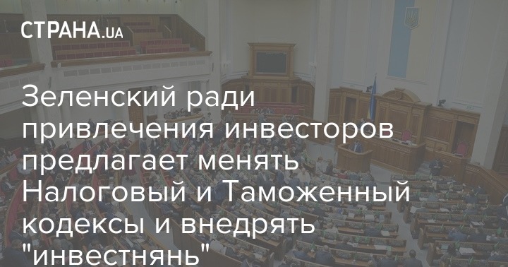 Зеленский ради привлечения инвесторов предлагает менять Налоговый и Таможенный кодексы и внедрять "инвестнянь"
