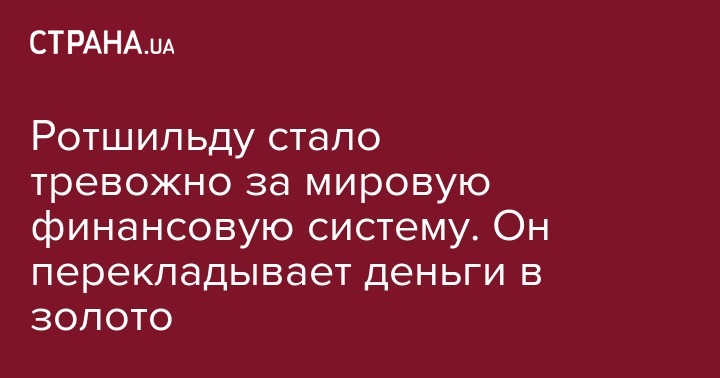 Ротшильду стало тревожно за мировую финансовую систему. Он перекладывает деньги в золото