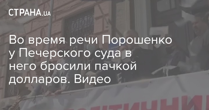 Во время речи Порошенко у Печерского суда в него бросили пачкой долларов. Видео
