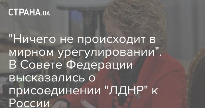 В Совете Федерации РФ заявили, что разговоры о возможности скорого вхождения "ЛДНР" в состав России возникли из-за того, что в процессе мирного урегулирования ситуации на Донбассе нет продвижения.