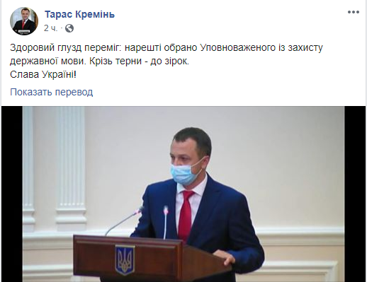 Языковым омбудсменом стал один из самых радикальных кандидатов на эту должность - бывший депутат от "Народного фронта" Тарас Креминь. Который является соавтором закона о тотальной украинизации.