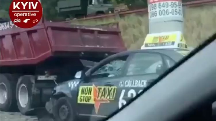 В Киеве погиб водитель такси на скорости влетевший под самосвал. Видео с места ДТП