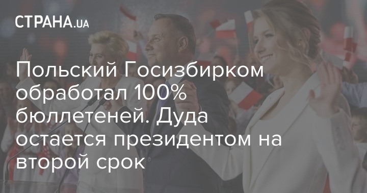 Польский Госизбирком обработал 100% бюллетеней. Дуда остается президентом на второй срок