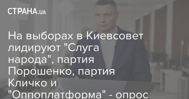 Действующий мэр Киева Виталий Кличко и партия "Слуга народа" получили наибольшую поддержку киевлян в результате опроса, проведенного социологической службой Центра Разумкова.