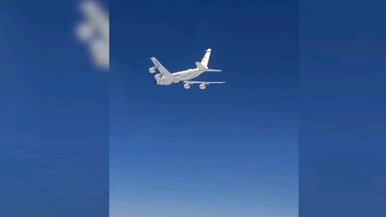 А 1 июля истребители авиации Черноморского флота Су-27 перехватили самолет-разведчик RC-135W Rivet Joint ВВС США.