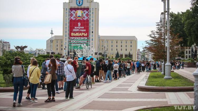 Сотни минчан выстроились у здания ЦИК, чтобы подать жалобу на отказ допускать к выборам соперников Лукашенко
