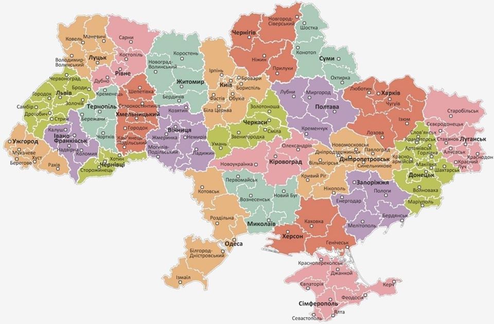 А так выглядит карта Украины с новыми районами.