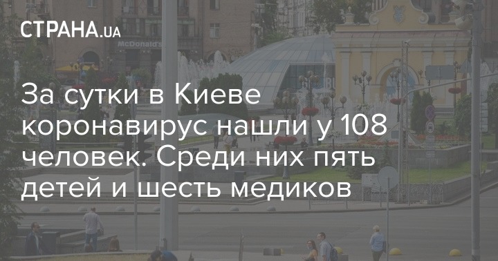 За сутки в Киеве коронавирус нашли у 108 человек. Среди них пять детей и шесть медиков