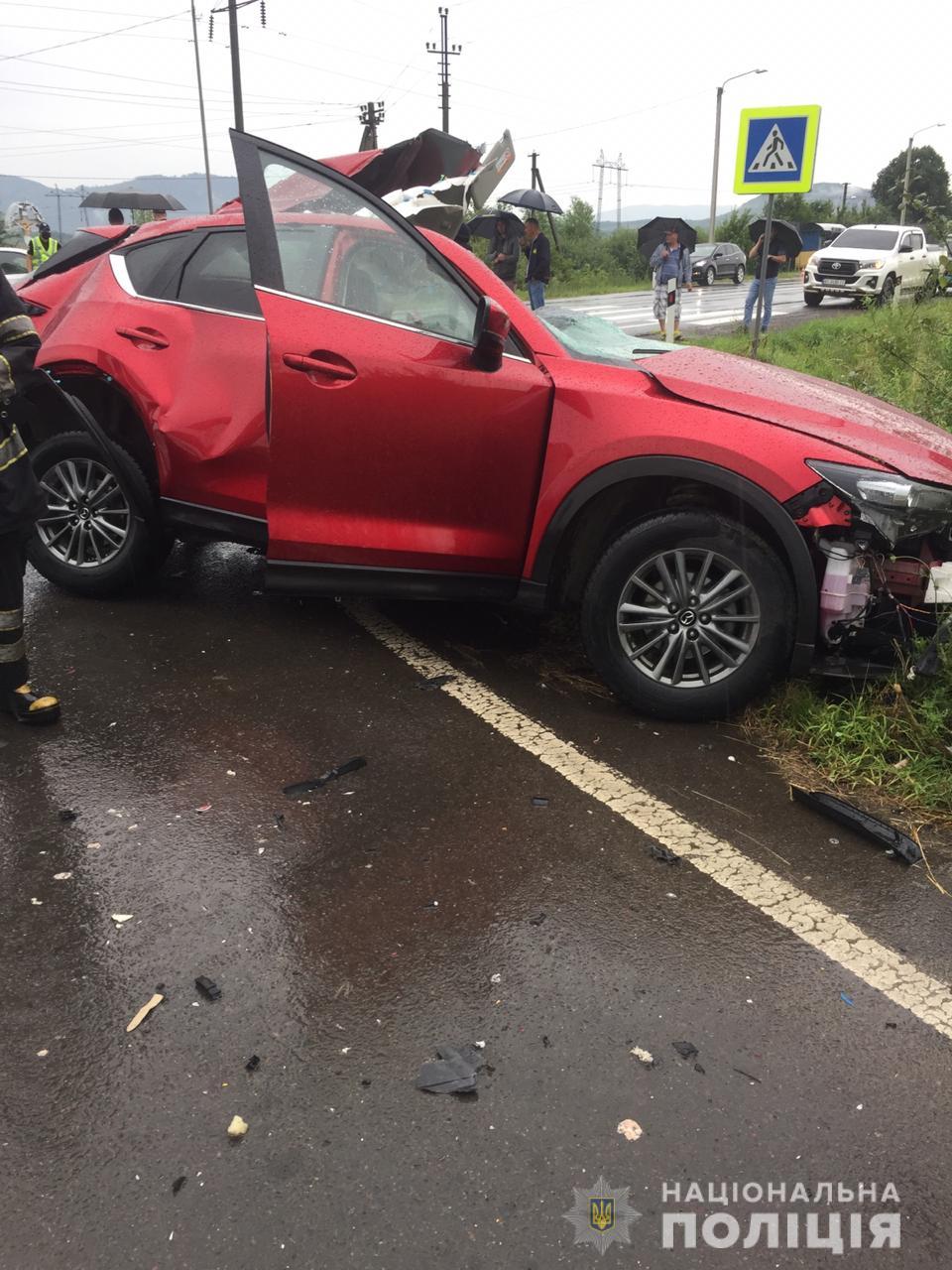 "Сегодня, 19 июля, около 16.20 часов в полицию поступило сообщение о дорожно-транспортном происшествии с пострадавшими на автодороге Киев-Чоп, неподалеку от с. Ивановка Мукачевского района… Автомобиль "Mazda", за рулем которого находился 56-летний житель Мукачево, столкнулся с грузовиком "Man", который двигался ему навстречу, в направлении Ужгорода. В результате удара, крупногабаритную машину выбросило с дороги, после чего она загорелась", - говорится в сообщении.