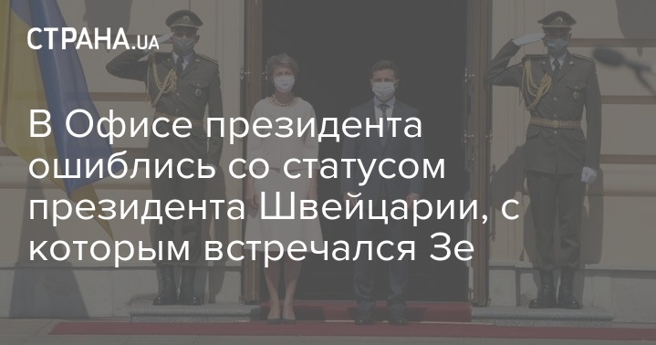 Соответствующее сообщение опубликовала пресс-служба Офиса президента Украины. В публикации сказано, что на официальной церемонии встречи в Мариинском дворце "начальник роты почетного караула отрапортовал главам двух государств". Также в сообщении несколько раз сказано, что президент Швейцарской Конфедерации Симонетта Зоммаруга "находится в Украине с государственным визитом".