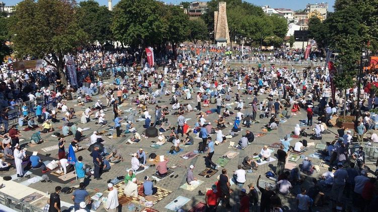 Сегодня, 24 июля, в соборе Святой Софии в Стамбуле (Айя-София) проходит первый за минувшие 86 лет официальный намаз. За несколько часов до намаза район был полностью перекрыт и оцеплен полицией.