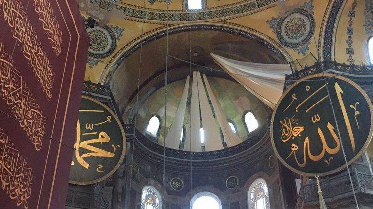 В соборе Святой Софии во время намаза завесили христианские мозаики. Фото