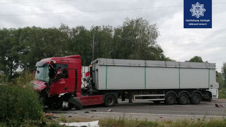 водитель авто Volkswagen, двигаясь в направлении Чернигова, выехал на встречную полосу и столкнлся грузовым автомобилем MAN. В результате аварии погиб водитель легкового авто. Десять пассажиров автобуса получили травмы.