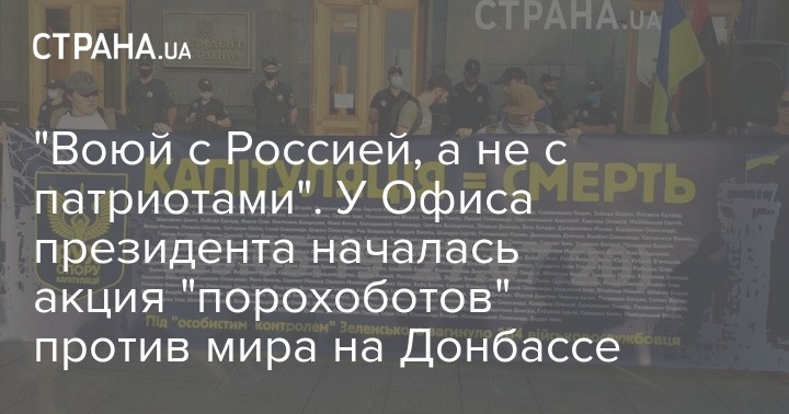 "Воюй с Россией, а не с патриотами". У Офиса президента началась акция "порохоботов" против мира на Донбассе