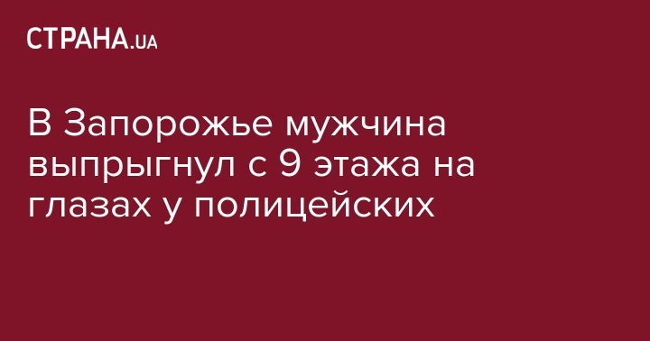 В Запорожье сегодня ночью мужчина на глазах у правоохранителей выбросился с девятого этажа. Инцидент произошел на улице Независимой Украины. Об этом заявила пресс-офицер запорожской патрульной полиции Юлия Шеймухова, передает УНН.