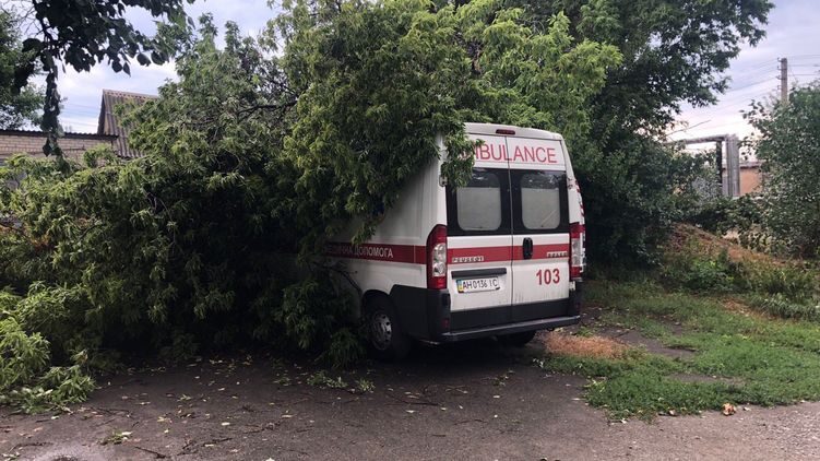 "В поселке Великая Новоселка Донецкой области прошел сильный ураган. Стихия обесточила населенный пункт. Снесла новую крышу со здания больницы, сорвала кровлю с домов, погнула рекламные щиты. Деревья падали на дороги, столбы оборвали провода на десятках улиц. Некоторые ключевые дороги были перекрыты упавшими деревьями, образовались пробки. Водителям пришлось самим расчищать себе путь. Повреждены автомобили скорой помощи", - указано в сообщении.