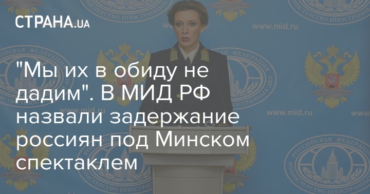 Что касается задержанных в Белоруссии российских граждан, вина которых ничем не доказана, и того спектакля, который вокруг этого устроили, то мы их в обиду не дадим, и в Минске это прекрасно знают", - написала представитель российского внешнеполитического ведомства.