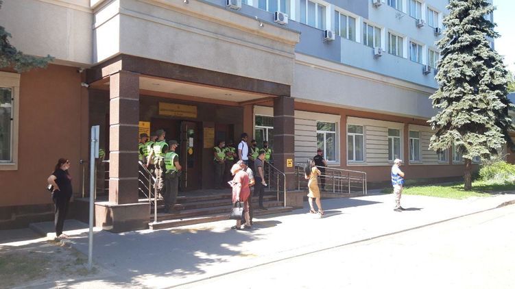 У входа в суд повышенные меры безопасности, сотрудники полиции проводят поверхностный досмотр личных вещей. У здания суда собрались около 50-70 человек из группы поддержки Стерненко. Общественный порядок обеспечивают силами Нацгвардии и полиции диалога.