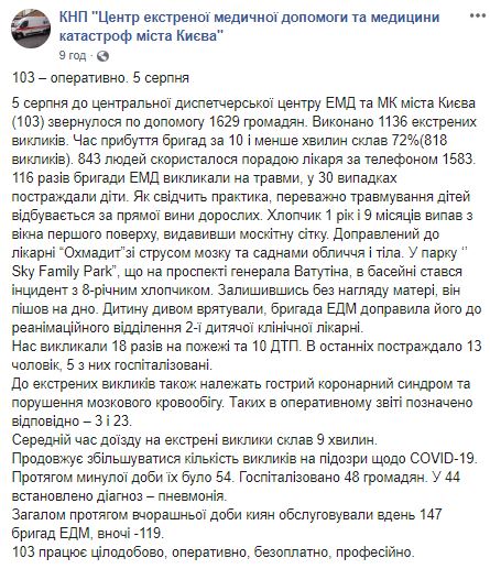 О гибели мальчика сообщает Центр экстренной медицинской помощи и медицины катастроф города Киева.