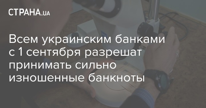 С 1 сентября все украинские банки смогут принимать и передавать для исследований в регулятор изношенные банкноты. Ранее этим могли заниматься только уполномоченные банки.