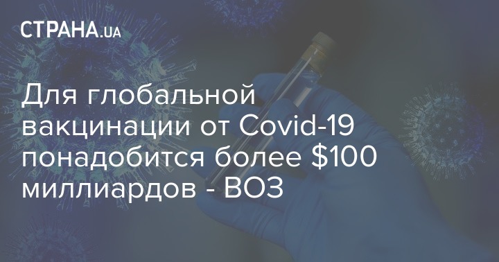 "Только для этой вакцины будет необходимо более 100 млрд долл. США, чтобы все люди имели к ней доступ", - сказал глава ВОЗ.