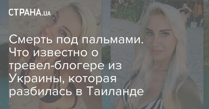 В Таиланде разбилась на байке 33-летняя украинская тревел-блогер Валерия Свистунова. Она публиковала фото в аккаунте Instagram под ником ya___lerochka. Подруга девушки рассказала, что теперь возникли сложности с транспортировкой тела на родину и друзья объявили сбор средств. В сети пишут, что она была пассажиркой, а водитель сбежал с места происшествия.