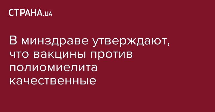 В Минздраве говорят, что вакцина против полиомиелита "Опверо", которая поступила в Украину из Франции в мае 2015-го года, качественная. Лабораторный контроль, как утверждают в ведомстве, провели по всем показателям качества и в Минздрав были предоставлены акты о соответствии предоставленных образцов серий «Опверо» показателям качества "аутентичность полиовирусов", "содержание полиовирусов", "термостабильность" и "стерильность".