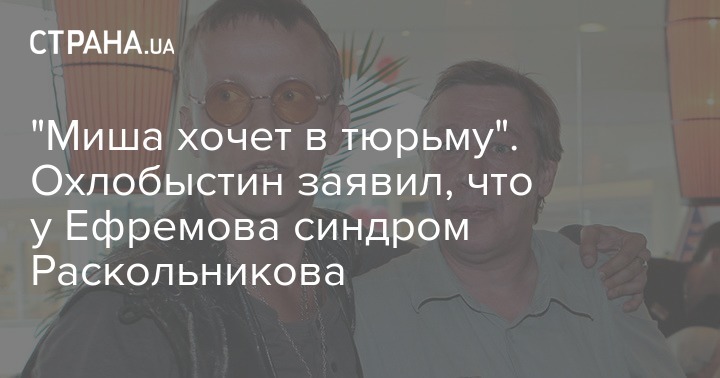 "Миша хочет в тюрьму, у него синдром Раскольникова", - добавил Охлобыстин, который является кумом Ефремова.